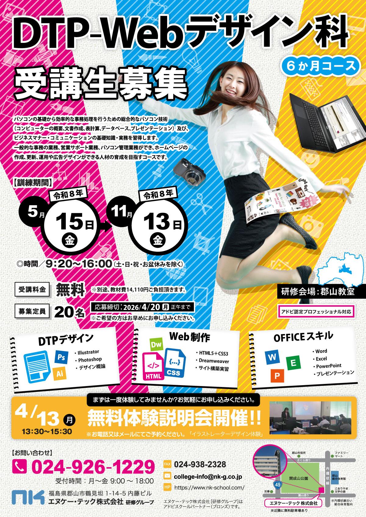 郡山教室で5月開講の求職者支援訓練「DTP-Webデザイン科」が募集中です!