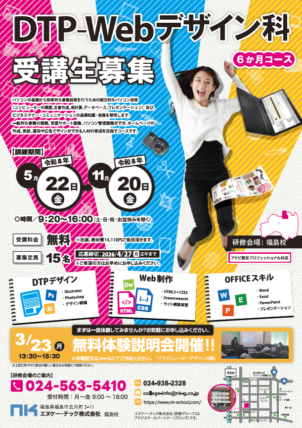 DTP-Webデザイン科(5月開講:福島) 募集中